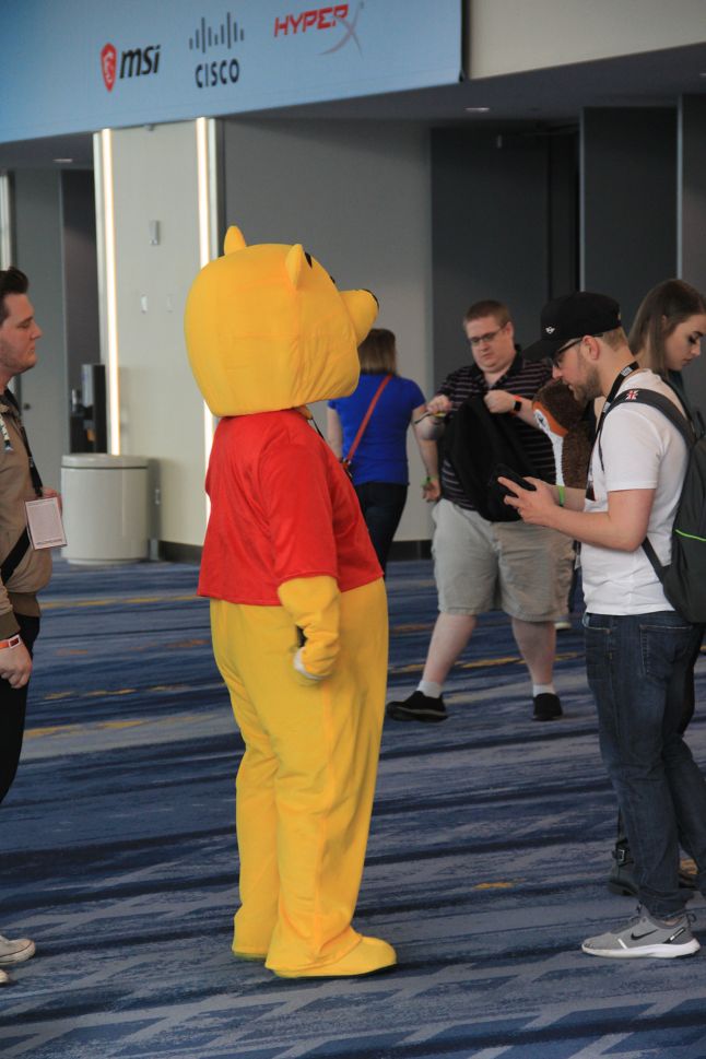 The most visible form of protest inside the convention center was a handful of Winnie the Pooh cosplayers who looked fantastically out of place amidst the sea of Murlocs, demons, and other costume-clad attendees. One costume-bearer, Robert, explained how he’d come to wear his (rather large) outfit, seen in the image below.