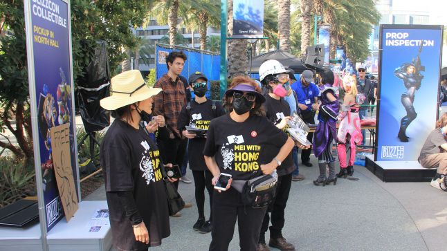 The protestors were encouraging passerby to take photos with sign-holders and cosplayers, including one local celebrity known for his appearances on the LA Clippers jumbotron. While BlizzCon itself features attendees from all over the globe, it appeared that Blizzard’s actions in Blitzchung’s banning set off a nerve with local activists, who were already mobilized to support Hong Kong and ready to take action at the company’s popular SoCal event.