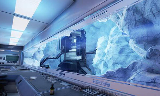 Some areas of the space station are made of a clever mix of store bought assets and custom art.