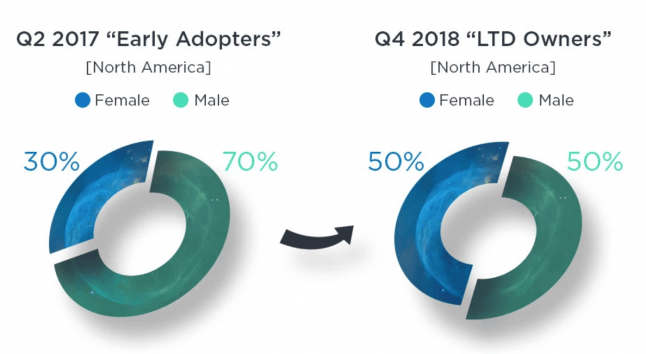 For example, The early demographic for the Switch was unbalanced, with men accounting for 70 percent of the player base. With time, its shifted to about a 50/50 split between men and women, skewing slightly more towards women.